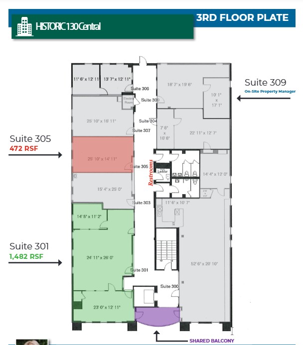 Suite 204 – 1,344 RSF Office Suite 301 – 1,482 RSF – Former Salon or Office Suite 305 – 472 RSF