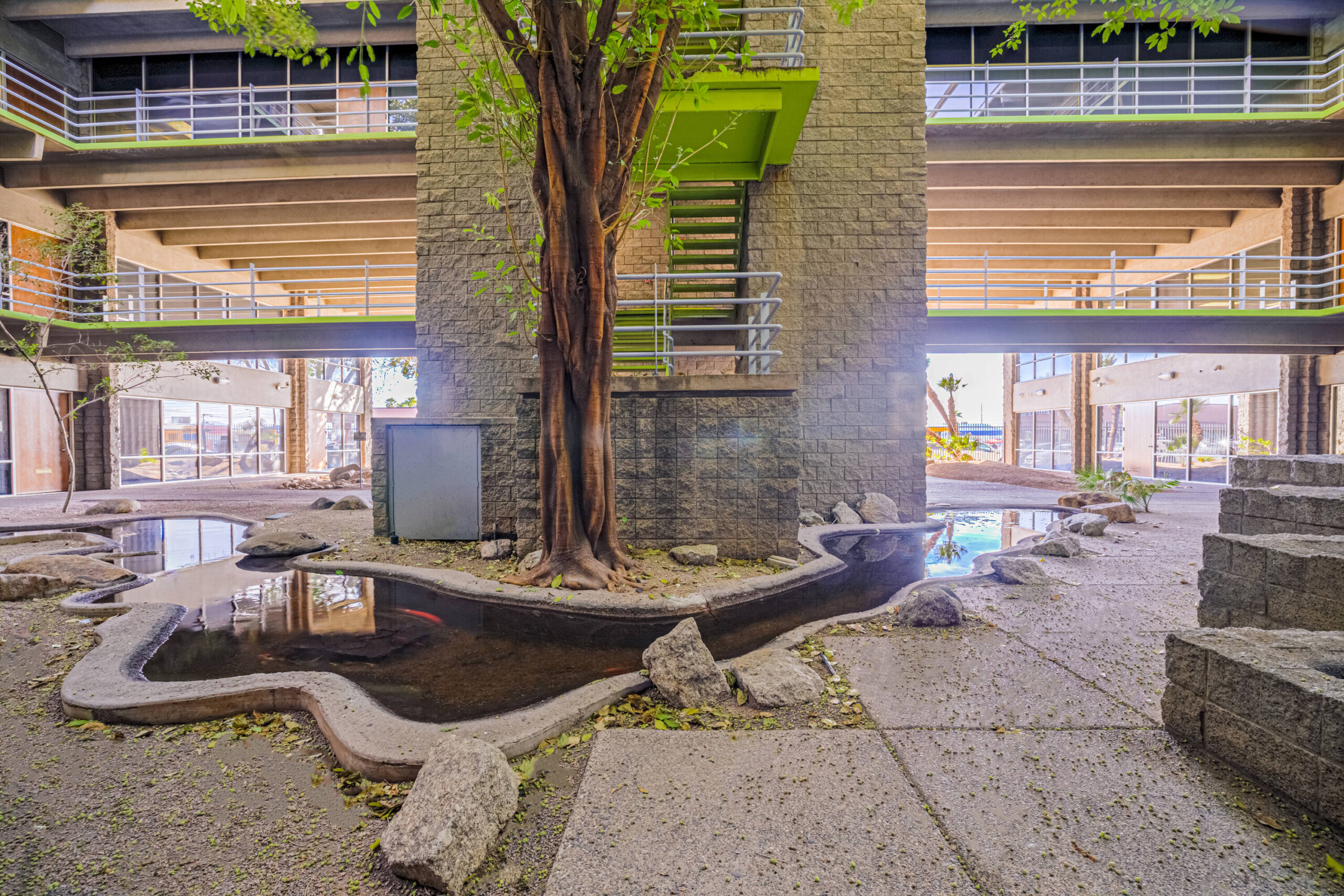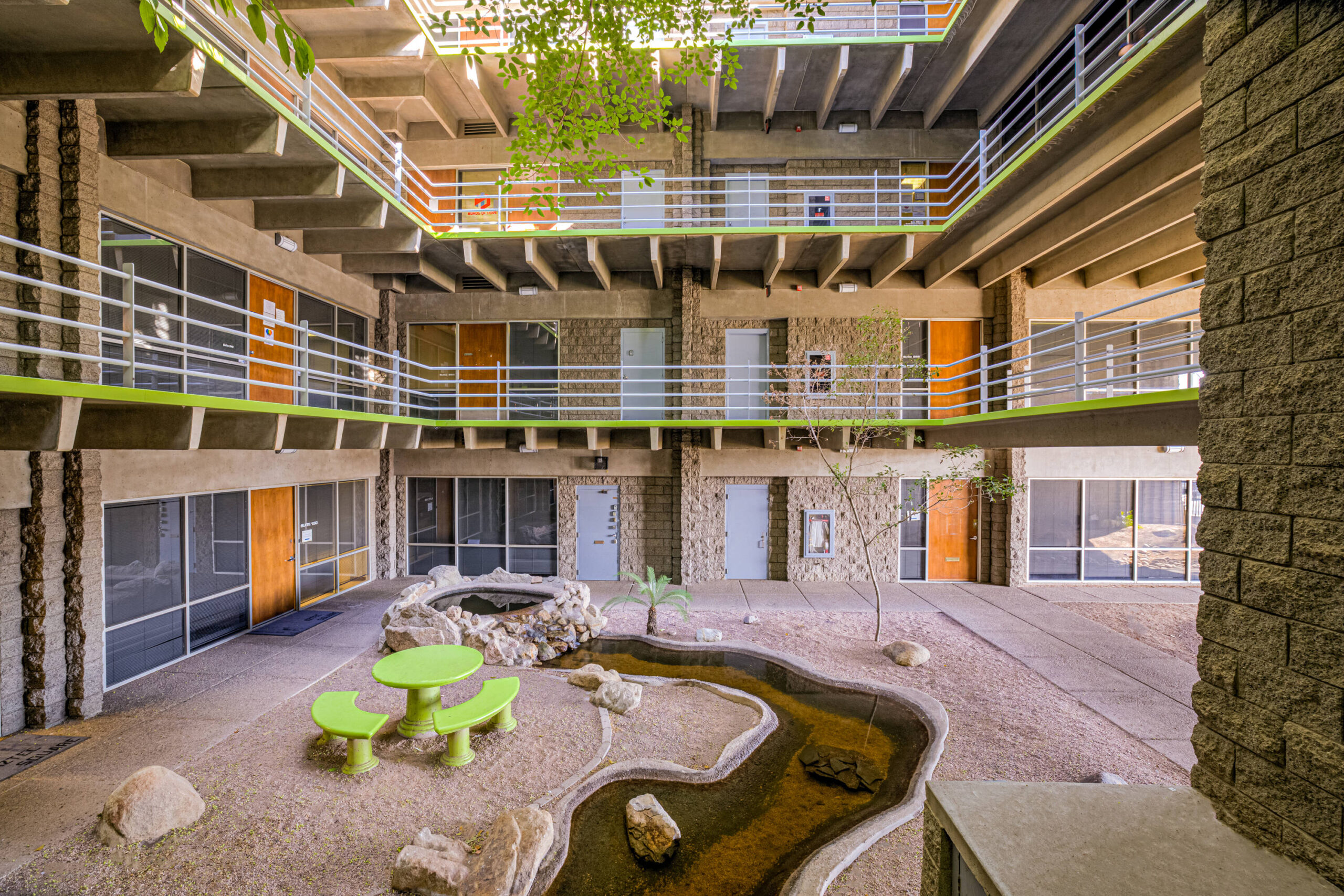 Midtown Phoenix Office with street appeal offering a range of suite sizes and flexible design. Turn-key suite is available for lease immediately or customize your suite to fit your needs. Lush rainforest-like courtyard with koi pond provides a relaxing atmosphere for your break time get away. Spec Suite available to tour. Virtual Tours Available – Design a suite to fit your needs.